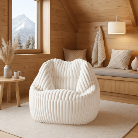 Fauteuil Pouf Bari Fausse Fourrure Grosses Côtes Camel